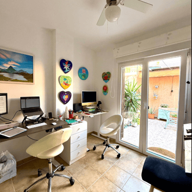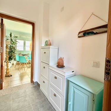 La vivienda se distribuye en tres dormitorios dobles con armarios empotrados y dos baños completos, uno de ellos en suite en el dormitorio principal. El diseño interior combina funcionalidad y confort, ofreciendo espacios amplios y bien aprovechados.