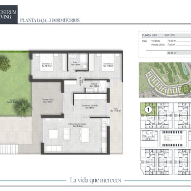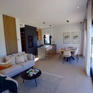 El proyecto está formado por viviendas modernas de líneas limpias, distribuciones abiertas y una cuidada integración entre interior y exterior. Cada villa se ha concebido para maximizar la luminosidad natural, con amplios ventanales, jardines privados y espacios pensados para disfrutar del clima mediterráneo durante los 12 meses del año. Según tipología, las viviendas pueden contar con solárium panorámico, porches cubiertos o zonas ajardinadas con posibilidad de piscina privada.