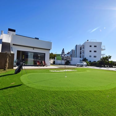 La promoción destaca por sus altas calidades: cocinas de diseño con electrodomésticos integrados, armarios empotrados forrados, iluminación interior y exterior instalada, baños completos con mamparas y mobiliario, aerotermia, preinstalación de aire por conductos y otros extras orientados a garantizar eficiencia energética y confort. En las unidades de planta alta, los solárium incluyen cocina de verano totalmente equipada, perfecta para reuniones y relajación con vistas abiertas al golf y a la montaña.